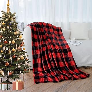 U UQUI フランネルブランケット お昼寝ブランケット カウチ用 バッファロー格子柄チェック ギンガム ベルベット プラッシュベッドブランケット フランネルフリース オールシーズン 軽量ブランケット 赤と黒 50インチx60インチ