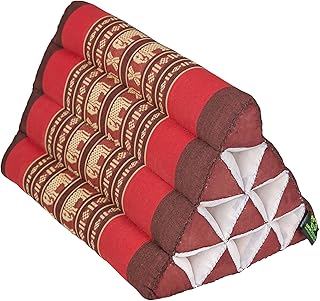 Kapok Dreams Thai Triangle Pillow 33cm x 20cm, Triangular Cushion (medium size), 100% Kapok-Stuffing Red & Orange.
