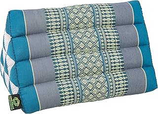 Kapok Dreams Thai Triangle Pillow 33cm x 20cm , Triangular Cushion (medium size), 100% Kapok-Stuffing Blue Tones