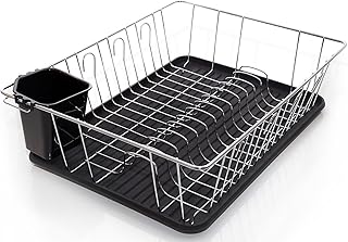 Home Intuition Dish Drainer Rack and Tray Set 17 x 13.75 x 5 (Black) by Home Intuition