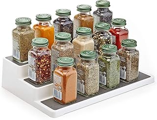 Home Intuition 3段 滑り止め スパイスラック ステップシェルフ パントリーキッチンキャビネットオーガナイザー 14インチ ホワイトグレー 2個パック
