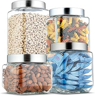 Home Intuition 正方形ガラスキャニスターセット ステンレススチール蓋付き 4個
