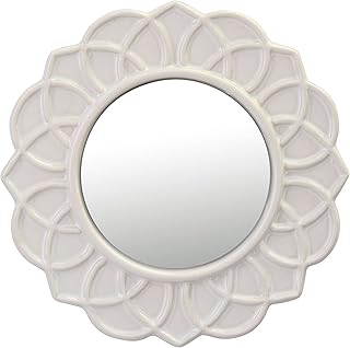 Stonebriar 装飾用ラウンドアイボリーフローラルセラミック壁掛けミラー ホワイト