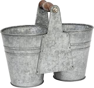 Stonebriar コンサバトリー アンティーク 亜鉛メッキダブルバケツ 木製ハンドル付き シルバー