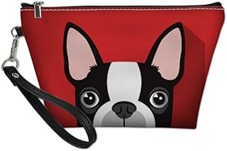 HUGS IDEA 花柄ボストンテリア柄柄化粧ポーチ 女性用, レッドボストンテリア。, S