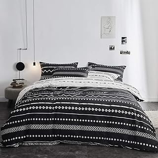 AMZTOP 【最新作 幾何学模様 掛け布団カバーセット 綿100% モダン リバーシブル 寝具コレクション 3点セット ファスナー付き 大人 ティーン 子供用 シーツなし Queen/Full
