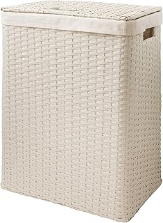 SEMI-MT 人工ラタン ランドリーボックス ふた付 ランドリーバスケット ふた付き スリム 大容量 ランドリー収納 人工ラタン 洗濯物入れ 完成品 脱衣かご プラスチック 籐 (アイボリー) MT-RB-380