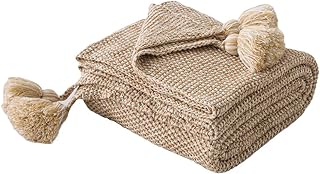 Fomoom ソファ用スローブランケット ホワイト ツインサイズ ポンポン付きニットブランケット ポンポン付き ふわふわ ふわふわ ふわふわ ソフト 快適 暖かいニットカバー 装飾コットンブランケット ソファベッド用