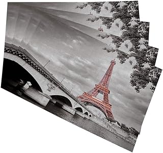 HOSNYE エッフェル塔プレースマット キッチンダイニングテーブル用 4枚セット 橋の下のセーヌ川 リネンプレースマット