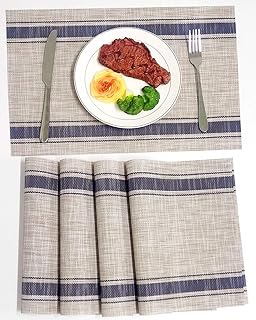 IMIYOKU プレースマット 8枚 18x12インチ 織物 防水 汚れ防止 滑り止め キッチンダイニングテーブル用 (8枚 12x18インチ ベージュ&ネイビーブルー)