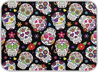 Qilmy シュガースカル ディッシュ乾燥マット 耐熱性 超水 吸収性 キッチン乾燥マット 吊り下げループ付き キッチンダイニングテーブル用 16 x 18インチ