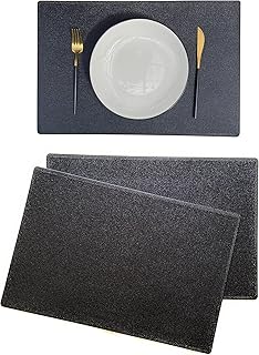 haoa ランチョンマット ランチマット プレースマット コースター テーブルマット 防水 汚れにくい キッチンダイニングテーブル用 四角 ブラック2枚セット 45cm×30cm お手入れ簡単 PUレザー フェイクレザー 滑りにくい 汚れに強い(ブラック,2)