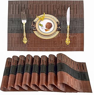 Yopay プレースマット 8枚セット 滑り止めビニール織テーブルマット 洗濯可能 キッチンダイニングテーブル用 18インチ x 12インチ グラデーションブラウン