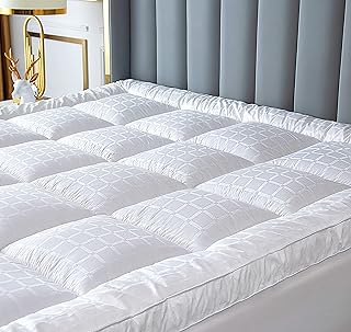 DOMICARE クイーンマットレスパッドカバー 深いポケット (8~21インチ) 冷却マットレストッパー コットンピロートップ 人工羽毛