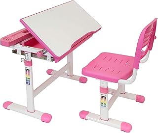 Mount-It! Kids Desk and Chair Set, Height Adjustable Ergonomic Children's School Workstation with Storage Drawer, Pink