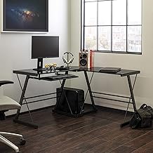 Walker Edison Furniture Company Modern Corner L Shaped Glass Computer Writing Gaming Gamer Command Center Workstation Desk Home Office, 51 Inch, Black 141[並行輸入]