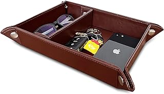 SUKKMORI ナイトスタンド バレット トレイ オーガナイザー - PUレザー ドレッサー オーガナイザー ボックス メンズ レディース - ジュエリーアクセサリー キャッチオール バニティ トレイ テーブル デスクトップ - ベッドサイド ステーション トレイ 鍵と財布用