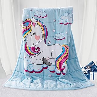 BUZIO 加重ブランケット 15ポンド ユニコーンフリースブランケット 60x80インチ 大人用 140-190ポンド ウルトラソフト 快適 子供ブランケット 落ち着いた睡眠に最適 スカイブルー