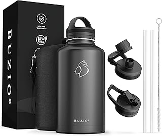 BUZIO スポーツウォーターボトル ストロー蓋 注ぎ口蓋 ハンド蓋 (蓋3つ) キャリーポーチ 40オンス 64オンス モダンダブル真空ステンレススチールウォーターフラスコ シンプルサーモ水筒 BPAフリー