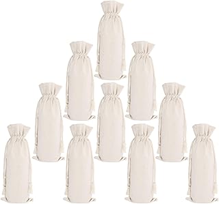 ElegantPark キャンバス ワインバッグ バルク ワインボトルバッグ 引き紐付き 再利用可能なワインギフトバッグ パーティー ウェディングギフト one size オフホワイト