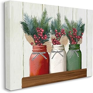 Stupell Industries フェスティブ ホリデー ジャー クリスマスベリーブーケ Ziwei Li キャンバス ウォールアート 16 x 20インチ オフホワイト