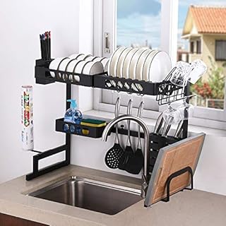 シンク上 水切りラック2段 食器 水切りかご 台所用品ホルダ キッチン収納 箸立て ディッシュラックまな板立て ステンレス製 スナップ式荷役 滑り止め吸盤 大容量 耐荷重40kg 幅:65CM 85CM (65cm)