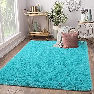 Terrug スーパーソフト ファジー モダン エリアラグ 寝室 リビングルーム 屋内 ホーム インテリア ルーム カーペット フラシ天 ふわふわファー ラグ 男の子 女の子 部屋 シャギー 快適 ラグ (6x9フィート ブルー)