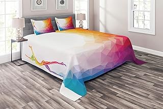 Ambesonne スポーツベッドカバー 体操 女の子 体操選手 ポートレート 色付き 幾何学模様 デジタル形 モダン オリンピック 装飾キルト ベッドカバー3点セット 枕カバー2枚付き クイーンサイズ ホワイトルビー