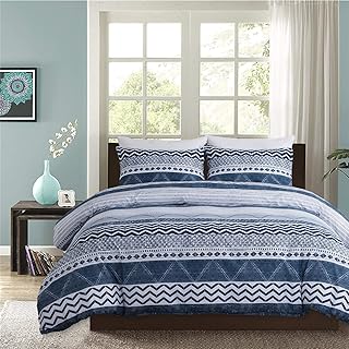 BBSET ブルーボヘミアン掛け布団カバー3点セット クイーンサイズ 幾何学模様 ボヘミアン寝具セット 掛け布団カバーセット ホテル品質 軽量 ソフトファスナー開閉