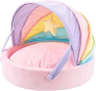 ペットのおもちゃ レインボーキャットベッド柔らかいペット寝台パッド深い睡眠猫巣犬ベッド快適で 犬の家星甲虫 (Color : White, Size : 45X45X35cm)