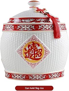 米キッチン穀物米樽セラミック防湿タンク家庭防虫貯蔵タンク白色貯蔵計シリンダー (Color : White+Red, Size : 21*27cm)