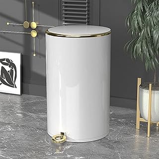 ソフトクローズスチール化粧品ビン付きバスルームゴミ箱、ABS蓋付きバスビン、インナービン(Color:White gold,Size:8L)
