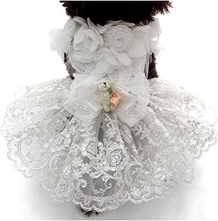 HUMINGG 犬の猫の豪華な結婚式の王女のドレスペットの子犬のスカート服アパレル花のデザイン (Color : White, Size : M)