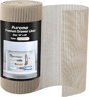 Puroma 12インチ x 20フィート 引き出しと棚用ライナー 引き出しキャビネット 非粘着保護 丈夫で強力なグリップライナー 引き出し 棚 キッチン キャビネット 収納 テーブル用 ベージュ