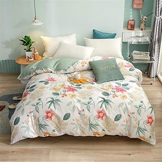 LAIKOR 掛け布団カバー 布団カバー 掛け布団用 カバー 四季適用 オールシーズン 綿100% コットン 花柄 洗える 両面用 高密度 活性プリント (ベージュ, シングル 掛けふとんカバー単品)
