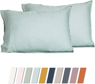 Victory Symbol ピュアリネン枕カバー 1ペア 100%フレンチナチュラルリネン ソフト 丈夫 ベーシック枕カバー ウォーターブルー キング 20インチ×40インチ(51cm×102cm)