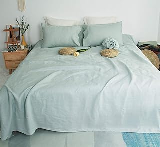 Victory Symbol 100%フレンチナチュラルリネン寝具セット ウルトラソフトストーンウォッシュリネンシーツセット Queen set 4pcs ブルー