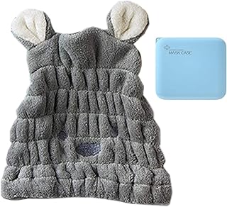 ヘアキャップ 速乾 うさぎ かわいい タオルキャップ 吸水タオル ヘアバンド お風呂上り ターバン 子供 女の子 大人 吸水 やわらか 速乾 マイクロファイバー タオル ドライキャップ タオルドライ ヘアターバン (クマ耳 ブルー + キッズ 可愛いヘアゴム 20本付き))