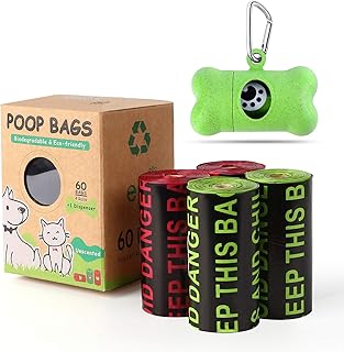 生分解性犬用うんちバッグ ペットゴミ袋 4ロール (60個) 犬用のディスペンサー付き 環境に優しい 漏れ防止 ディスポーザー詰め替えバッグ