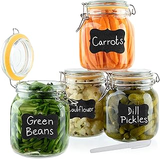 Galashield ガラスジャー 密閉蓋付き キッチン食品保存キャニスタージャー 漏れ防止 密封クランプシール付き 4個セット 33オンス